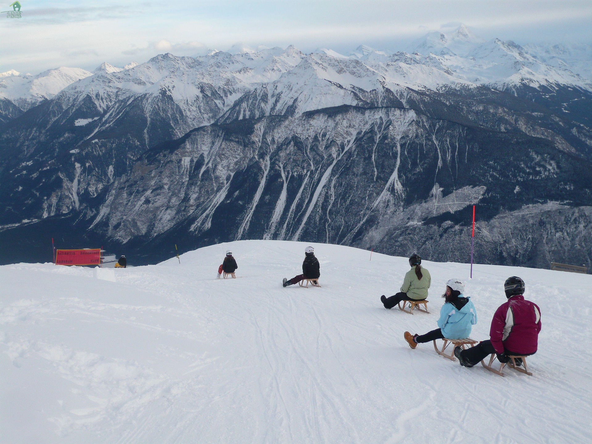 Pour les adeptes de glisse et de rires, depuis la Cabane de la Tièche (2000 mètres d’altitude), jusqu’à Aminona (1500 mètres), vous pourrez dévaler une piste de luge de 6km, parmi les plus belles de Suisse. Matériel fourni. Tarifs sur demande.